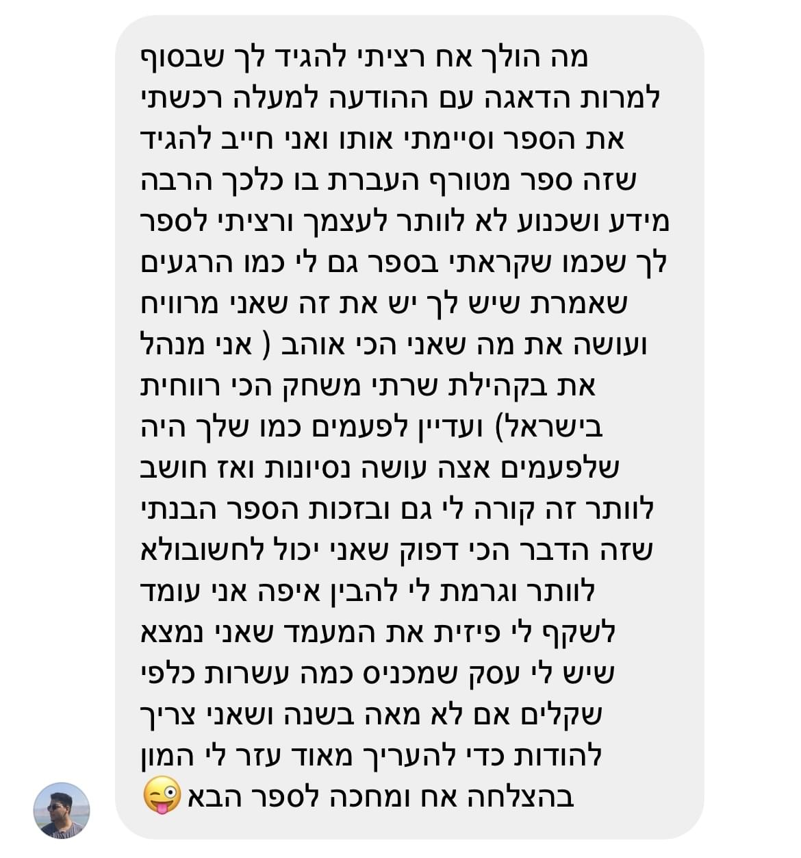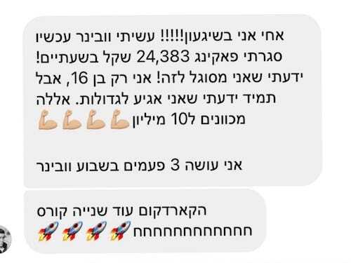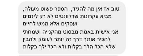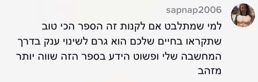 הסיבה שהספר מכיל כל כך הרבה ידע, ונמכר במחיר כל כך זול לעומת קורסים שלי שעולם אלפי שקלים, היא בגלל שאני רוצה לתת לך הזדמנות להכיר אותי באמת. גם את הצדדים בתוכי שאני לא הכי מתגאה בהם.